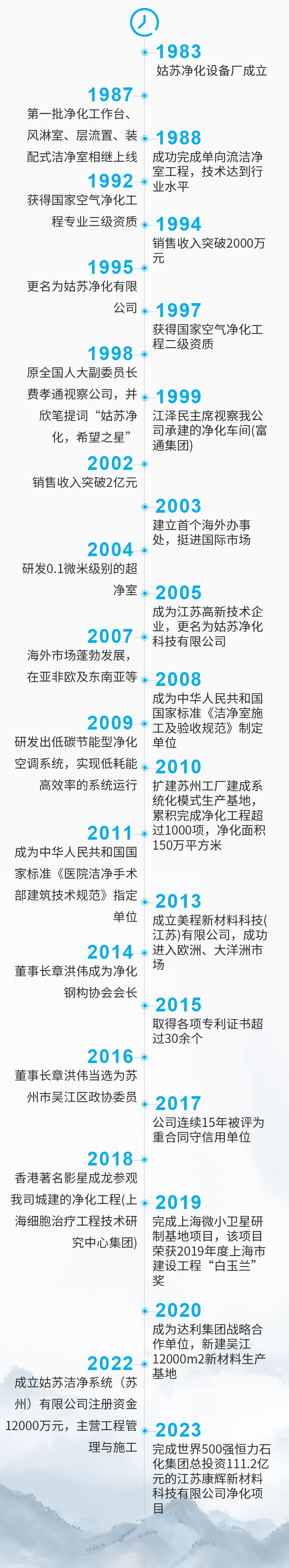 二十多年來,姑蘇在設計研發、生產制造、系統工程建設和客戶服務體系等方面積累了豐富經驗。具有30多項專利和4項發明專利。姑蘇產品和潔凈室系統解決方案廣泛應用于電子工業、半導體制造業、航空航天、精密儀器儀表、醫療衛生、生物制藥、潔凈手術室、生物實驗室、食品保健、化妝品、光纖光纜、科研教學等諸多領域,尤其在生物制藥、電子產業、醫院潔凈手術室等凈化行業的三大支柱板塊中確立了地位。目前,已為全國34個省市自治區及全球30多個國家和地區的客戶提供了優質服務,完成潔凈室系統工程數量超過1000項,實施凈化面積達150萬平方米。