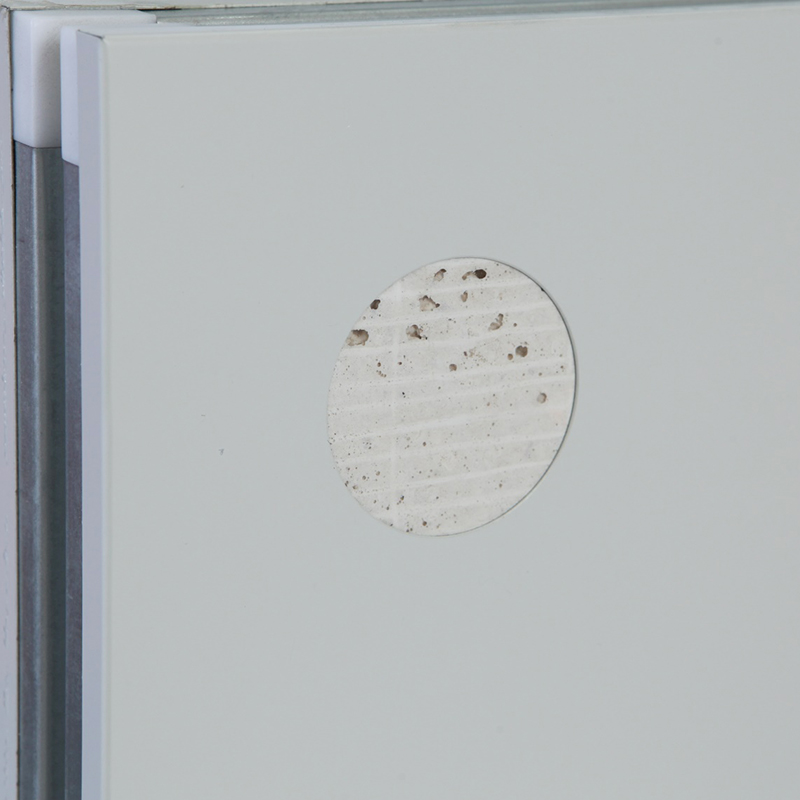 b. 芯材采用玻鎂,用熱固化膠在連續成型機內熱加壓復合而成的超輕建筑板材;